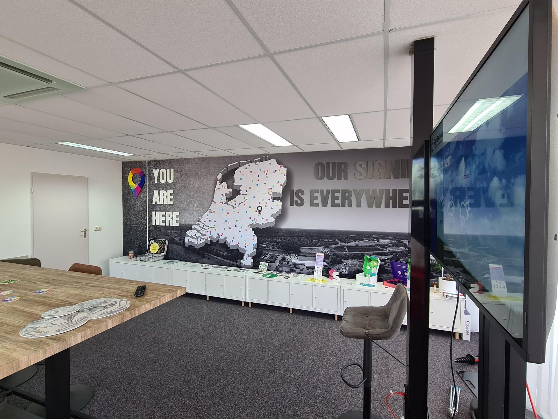 Dat doel verandert niet, maar de middelen wel. Dat zie je terug in het aanbod van producten, die Signsellers in haar experience room in Lochem heeft staan. De mogelijkheden van gevelreclame, wayfinding en allerlei vormen van belettering zijn alleen maar toegenomen. Ook is er in het ontwerp natuurlijk het nodige veranderd. Een andere verandering is de opkomst van digitale communicatie. Een scherm biedt nog meer mogelijkheden dan standaard signing. Om hiermee tegemoet te komen aan de wensen van haar klanten, biedt Signsellers in samenwerking met instore broadcast daarom ook digital signage aan.